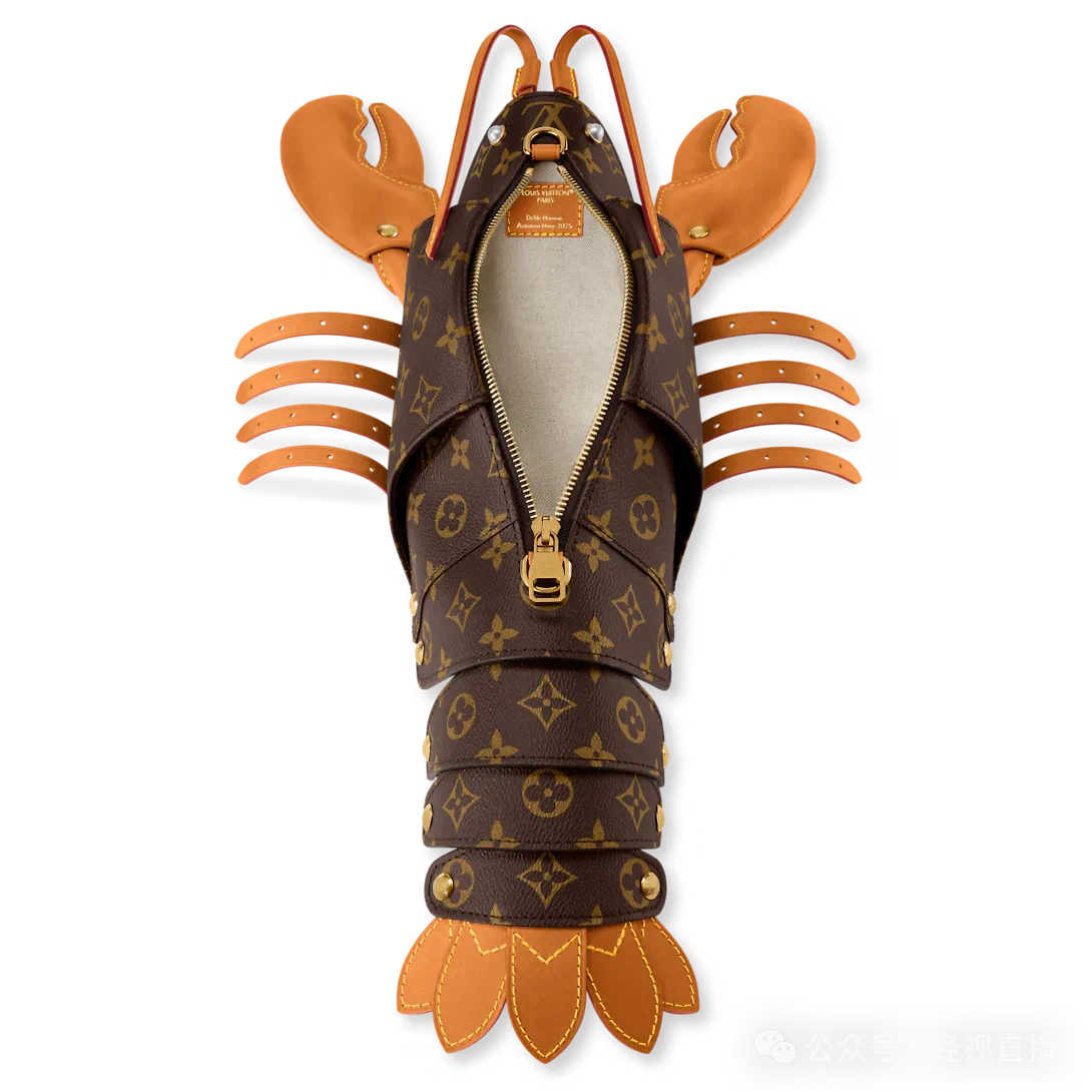 - ロブスター型のハンドバッグ。サイズは14cm x 10cm x 44cm(高さ x 幅 x 奥行き)です。携帯電話、鍵、カードホルダーなど、日常的に使う小物を収納できる十分なスペースがあります。手持ち、肩掛け、斜め掛けなど、様々な持ち方が可能です。ユニセックスデザインで、男女問わずお使いいただけます。定価は1,005,500円です。